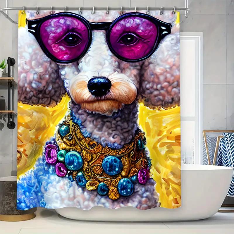 Modern Bathroom Decor: Cool Poodle Shower Curtain with Sunglasses and Jewelry Printed Fabric Bath Liner for Home Decoration in V