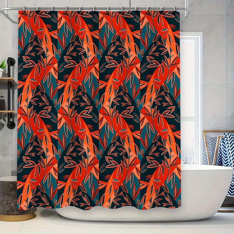 Luxury Bathroom Shower Curtain Set with Leaf Pattern Decorative Waterproof Fabric for Home Bathrooms Red Blue Green Colorful Pri