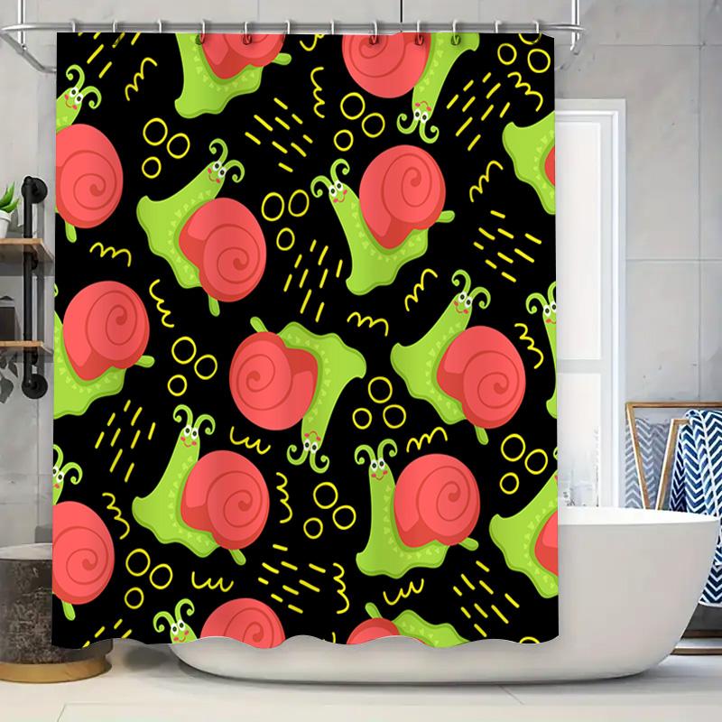 Bright Red Green Snail Print Shower Curtain Waterproof Home Decor for Bathroom Black Background (180x240cm)