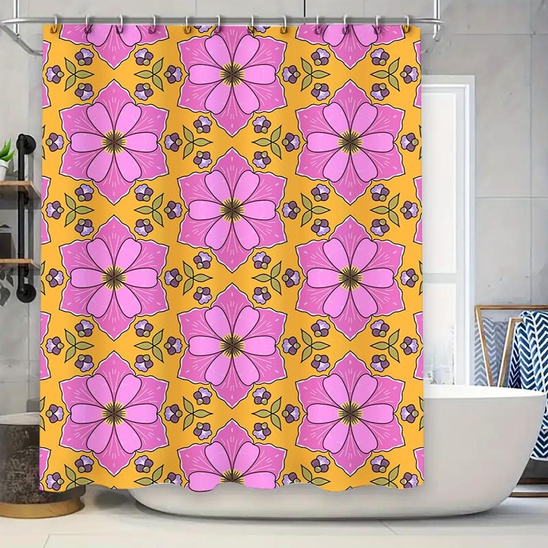 Vibrant Floral Shower Curtain Pink Purple Flower Decorative Home Waterproof Bath Decoration for Kids Bathroom
