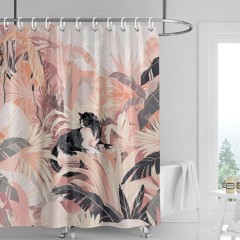 Cartoon cat waterproof shower curtain home decoration bathroom partition shower curtain 180x 200cm with 12 hooks