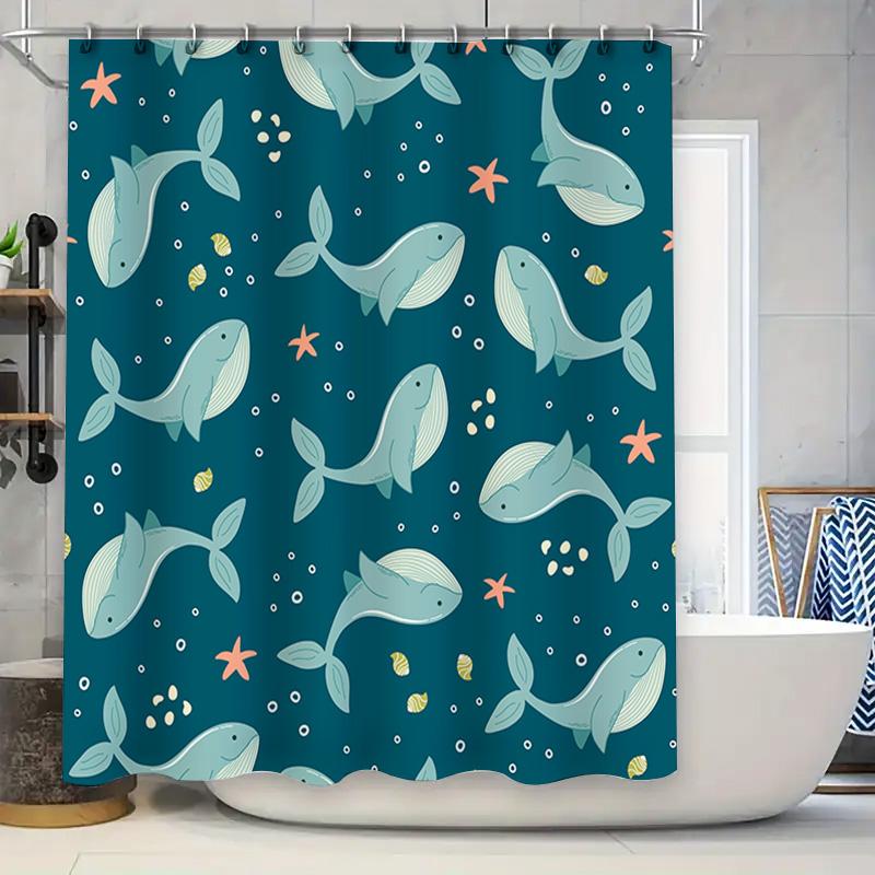 Whimsical Fish Blue Shower Curtain for Bathroom Decor with Seashell Design Home Textiles Available in Multiple Sizes at