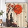 Japanese Warrior Samurai Shower Curtain Japan Shrine Red Full Moon Cherry Blossom Bathtub Decor Polyester Bath Curtain with Hook