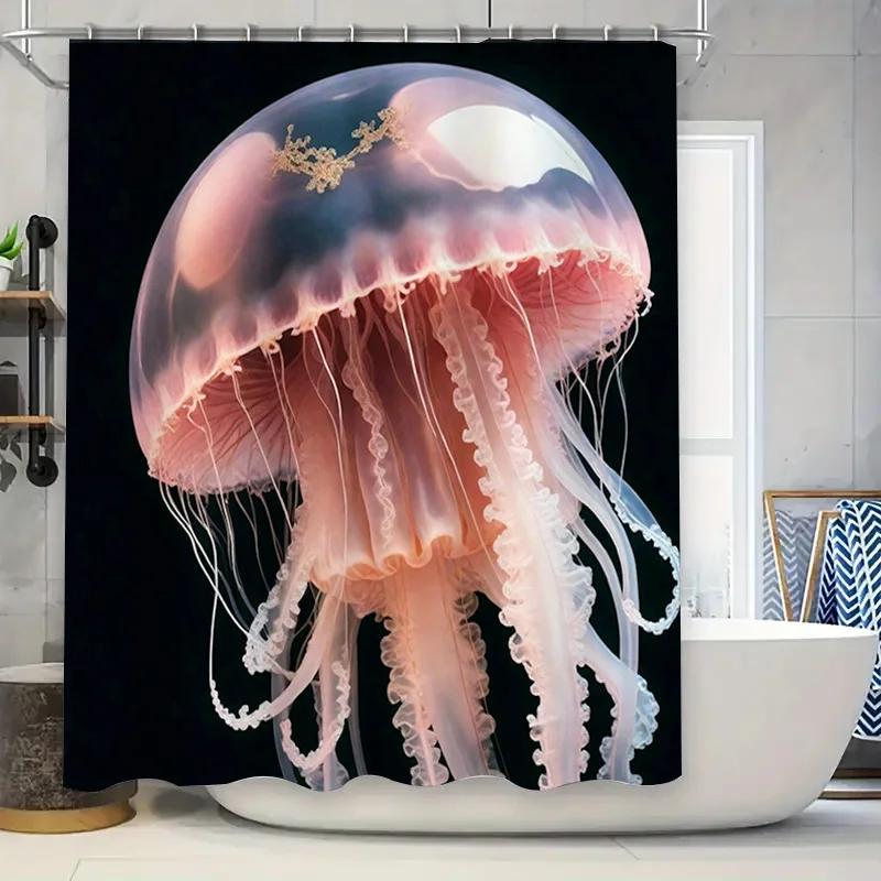 Stunning Jellyfish Bath Curtain Waterproof Decorative Shower Curtain for Bathroom, Pink White Colorful Printed Home Decor Item w