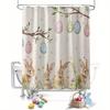 Easter Shower Curtain - Bunnies in Bathtub, Easter Eggs, Spring Garden & Butterflies, Pastel Design, Polyester Bathroom Decor