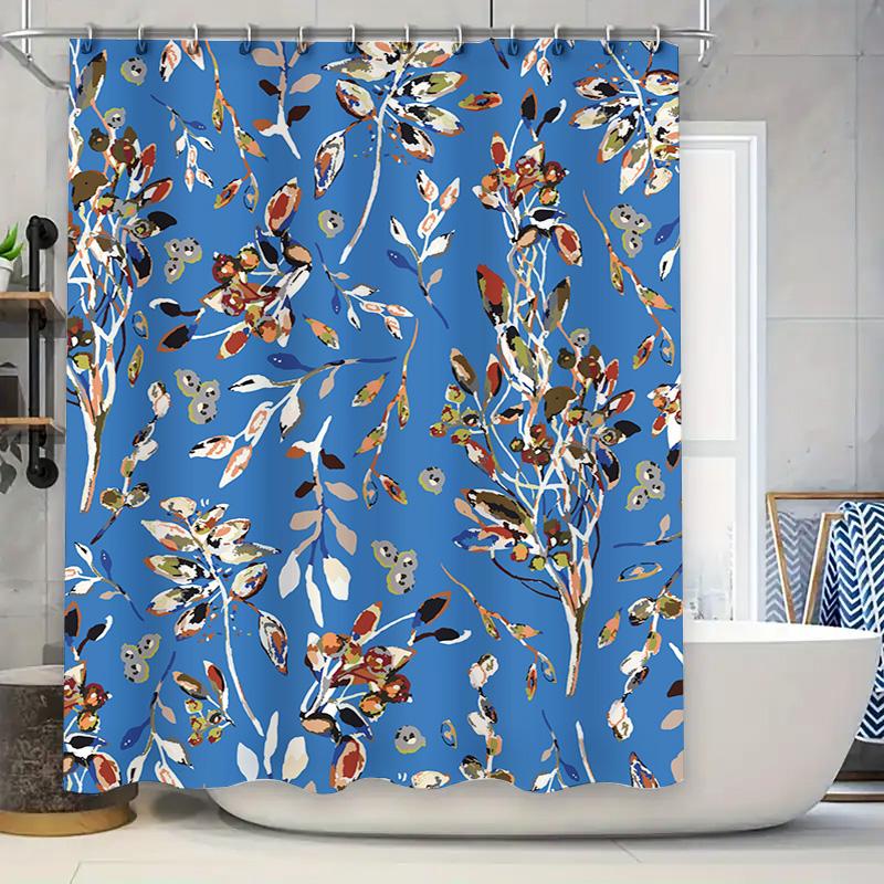 Vibrant Blue Floral Shower Curtain for Bathroom Decor Waterproof Fabric Printed Hanging Accessories with Hook Rings