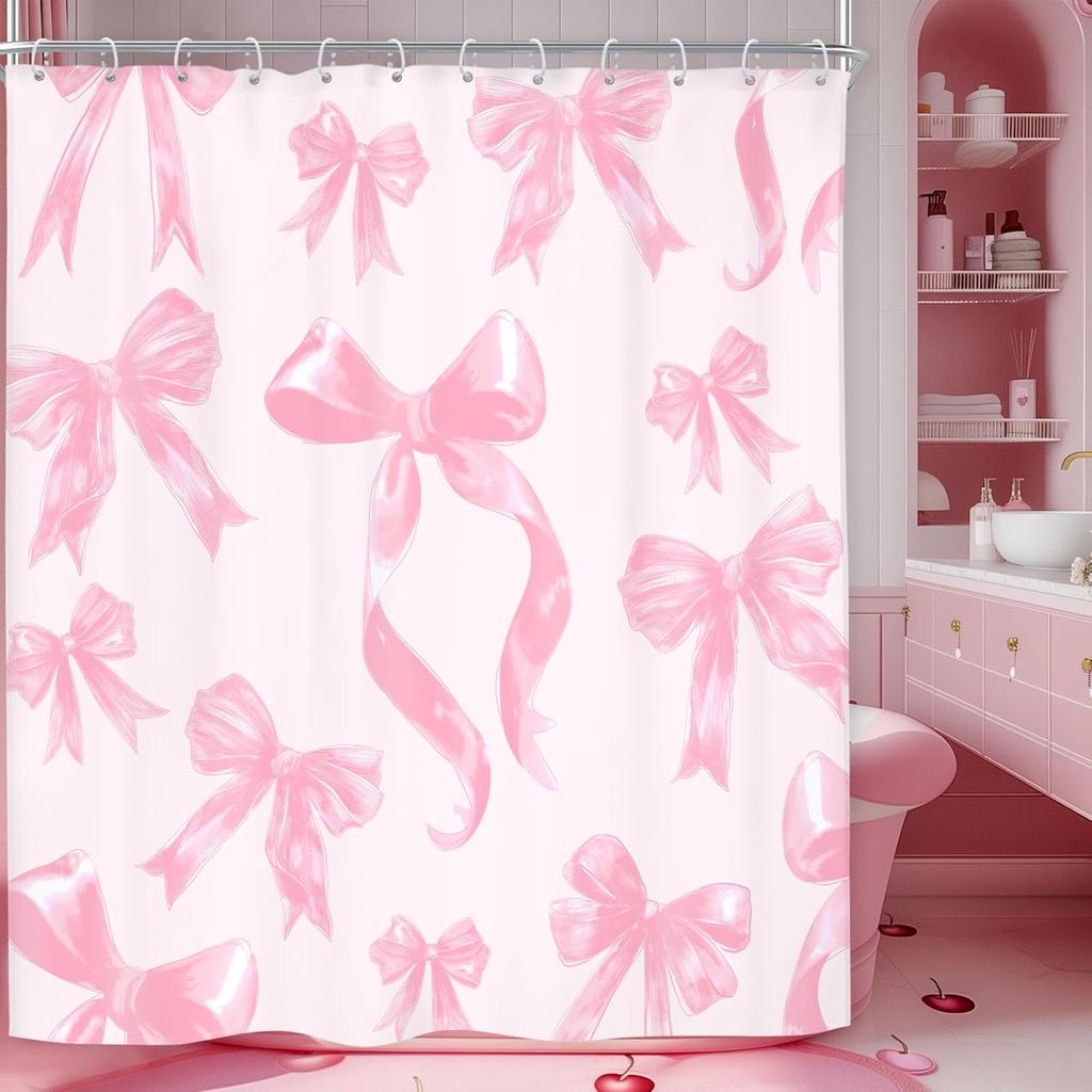 Pink Bow Shower Curtain Girly Preppy Elegant Modern Fashion Sweet Aesthetic for Girls Women Kids Bathroom Decor with Hooks