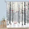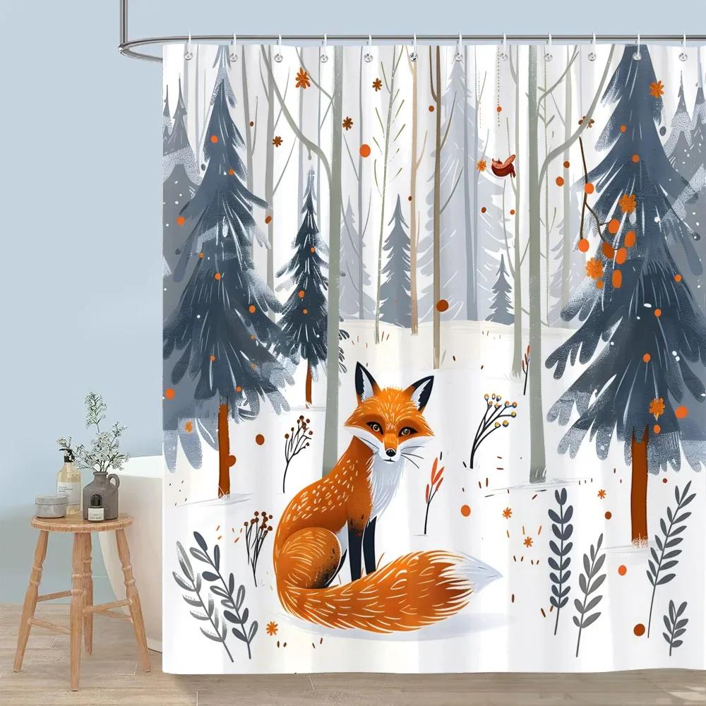 Cute Forest Animals Shower Curtain Winter Snow Fox Red Bird Deer Bear Rabbit Polyester Shower Curtains Bathroom Decor with Hooks
