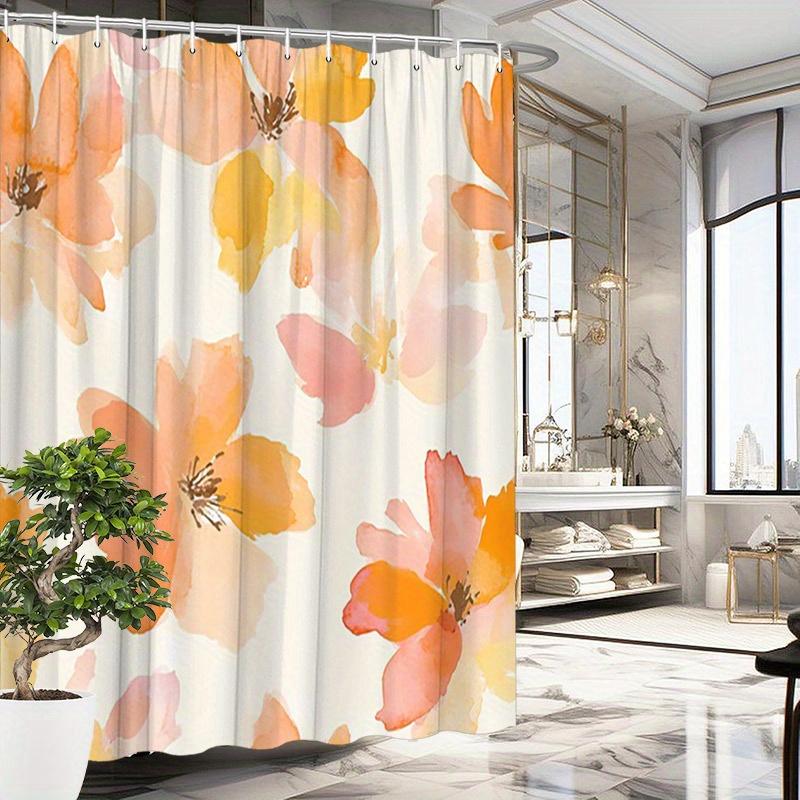 1pc Watercolor Blooming Flowers Shower Curtain - Peach, Orange & Pink Floral Design on Creamy Off-White