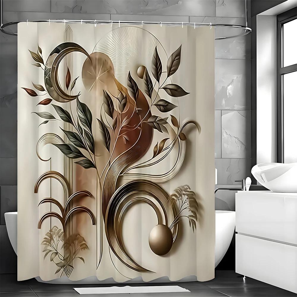 Floral Decorative Abstract Art Shower Curtain, Bathroom Decorative Shower Curtain, Waterproof Shower Curtain with Hooks