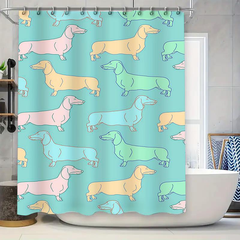 Vibrant Dogs Pattern Shower Curtain Blue Green Pink Yellow Colors Bathroom Decor for Kids Bathrooms Adults Modern Design Waterpr