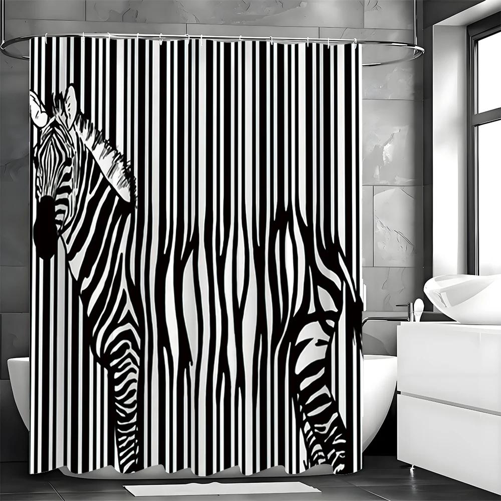 Zebra Stripe Shower Curtain, Bathroom Decorative Shower Curtain, Waterproof Shower Curtain with Hooks