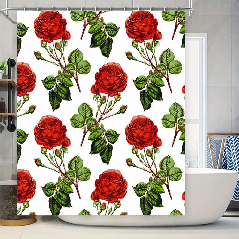 Red Rose Floral Shower Curtain Elegant Red Roses Print for Bathroom Decor