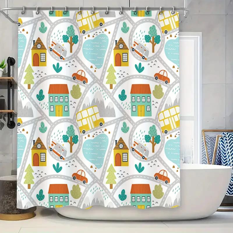 Kids Bathroom Shower Curtain Waterproof Cartoon Cars House Design Decoration Home Decor Watermelon Fruit Blue Green Yellow Orang