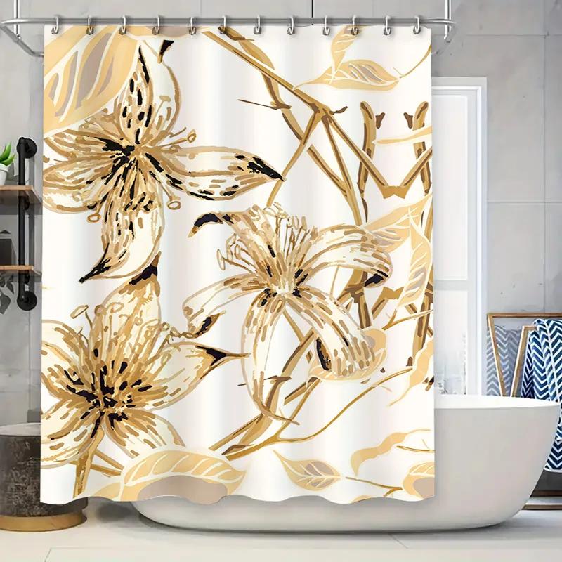 Luxury Floral Shower Curtain Modern Golden Bathroom Decor for Home Living Room Kitchen Waterproof Fabric in Various Sizes Availa