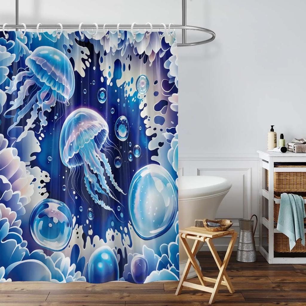 1PC watercolor jellyfish pattern shower curtain, with 12 hooks, for bathroom shower, fashionable bathroom decoration product