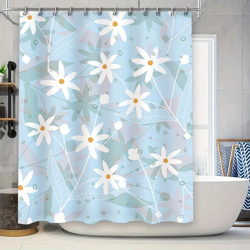 Blue Flower Pattern Waterproof Shower Curtain Modern Home Decor Bathroom Accessories for Wet Areas Easy Installation and Durable