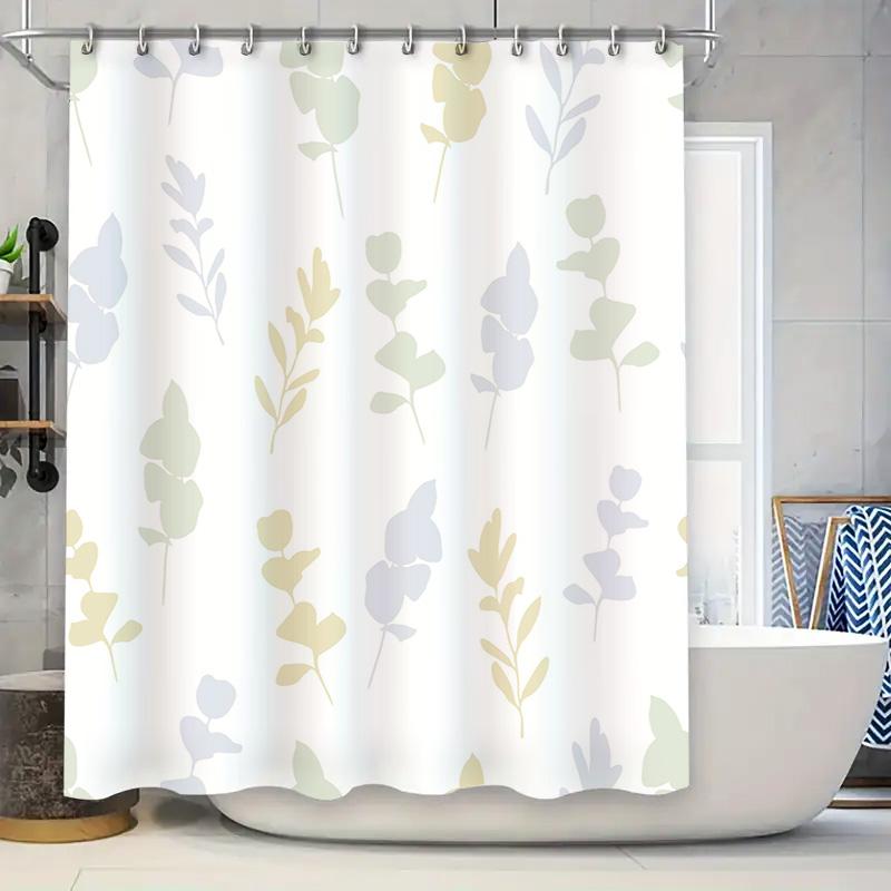 Modern Floral Print Shower Curtain White Pastel Colors for Bathroom Decor Waterproof Fabric 72x84