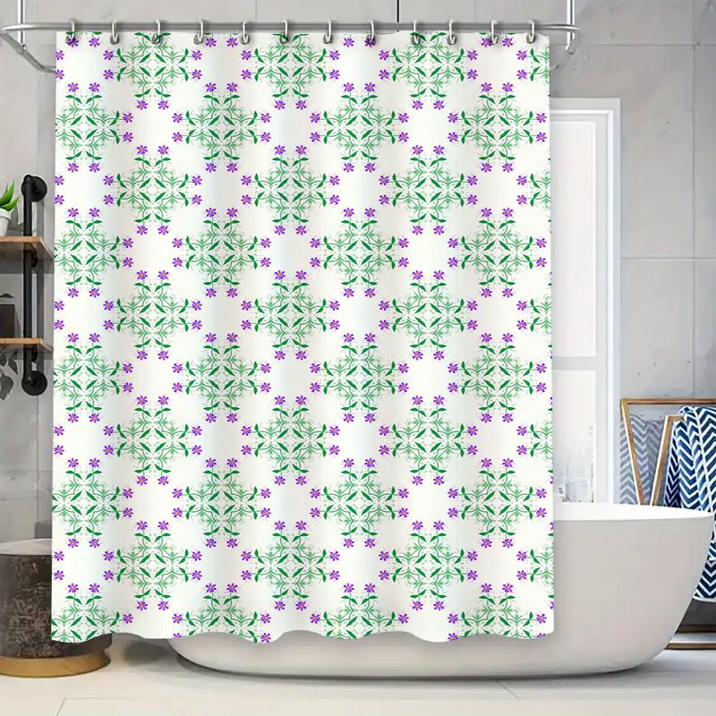 Beautiful Bath Shower Curtain with Pink Flowers Design for Bathroom Decoration White Peach Color Pattern Home Accessories Modern