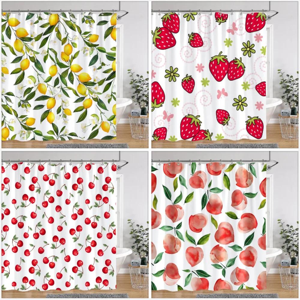 Třešeň Jahoda Citron Broskev Ovocný Potisk Sprchový Závěs Polyesterová Tkanina Dětské Koupelnové Závěsy Koupelnová Dekorace S Háčky
