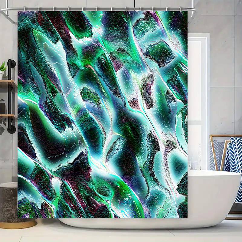 Luxury 3D Waterproof Shower Curtains for Bathroom Decorations Green Marble Print Fabric Water Repellent Modern Home Decor Window