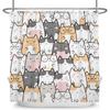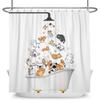 Minimalist Comics Shower Curtain Cute Cats Funny Cat Bath Scene Decor Waterproof Polyester Bathroom Curtain Set with 12 Hooks