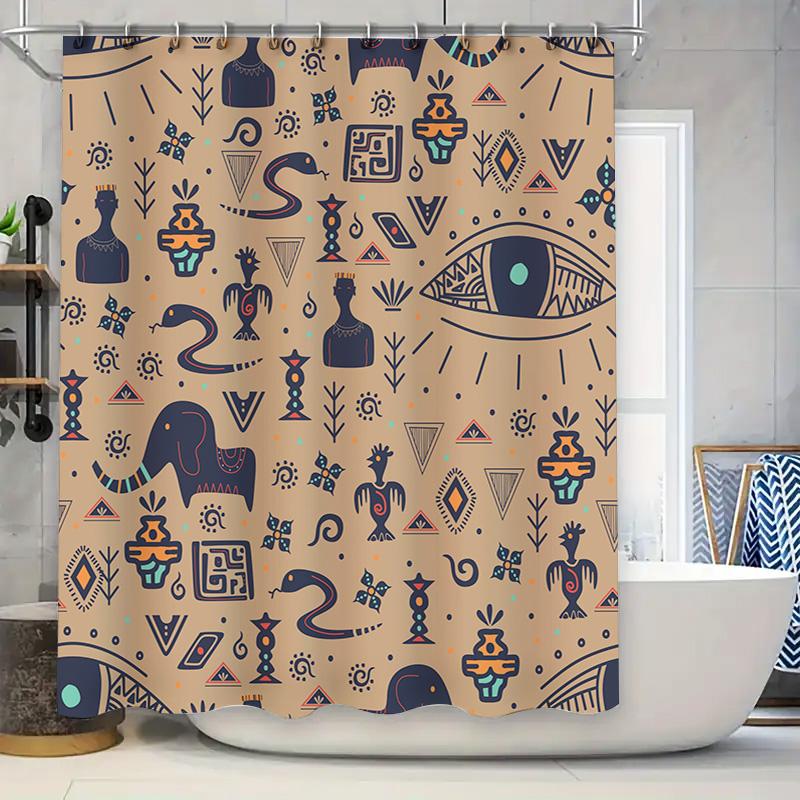 Trendy Bohemian Bathroom Decor Shower Curtain with Eye Design for Home Decoration Black/Beige Colorway (72x84 inches)