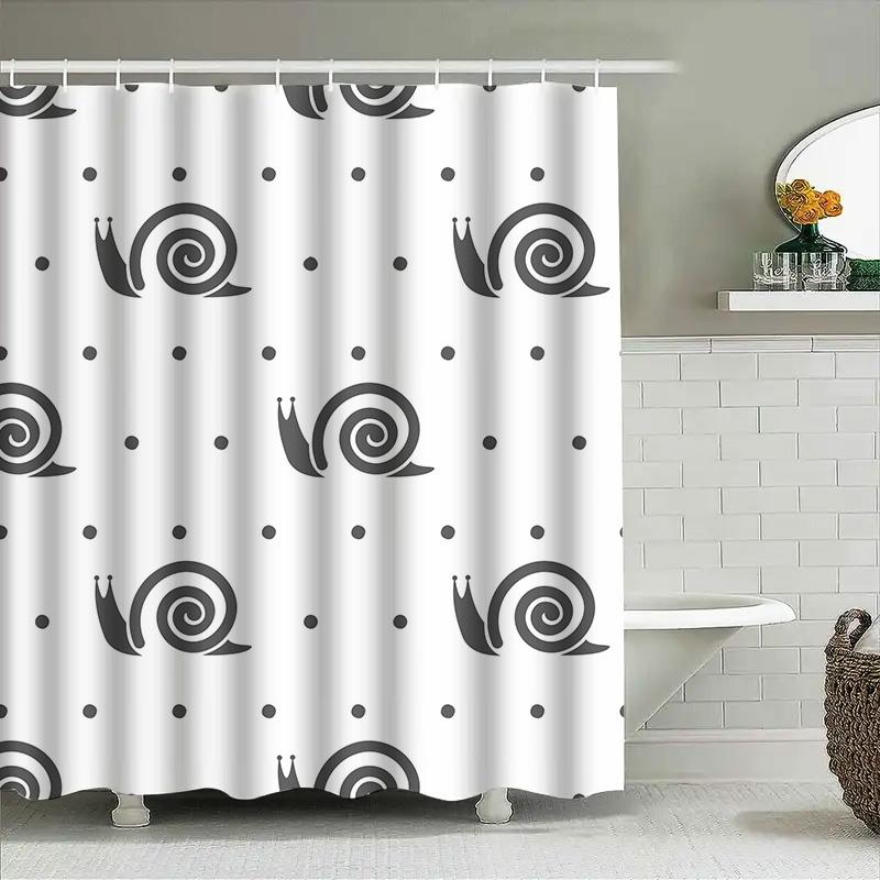 Modern Bathroom DecorPolka Dot Snail Printed Shower Curtain for Home Decor White Black Patterned Bath Linen with Metal Hook Ring