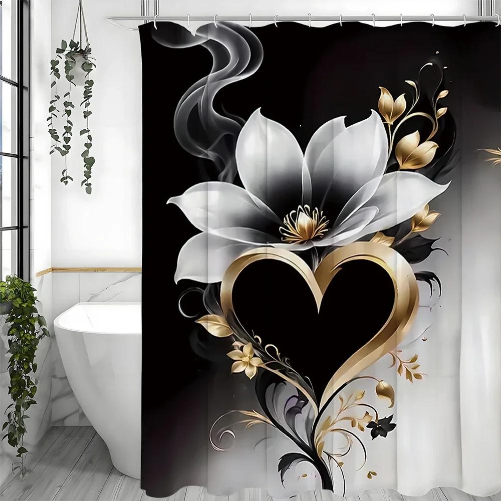 ~O~Flower Heart Shower Curtain, Bathroom Decorative Shower Curtain, Waterproof Shower Curtain with Hooks