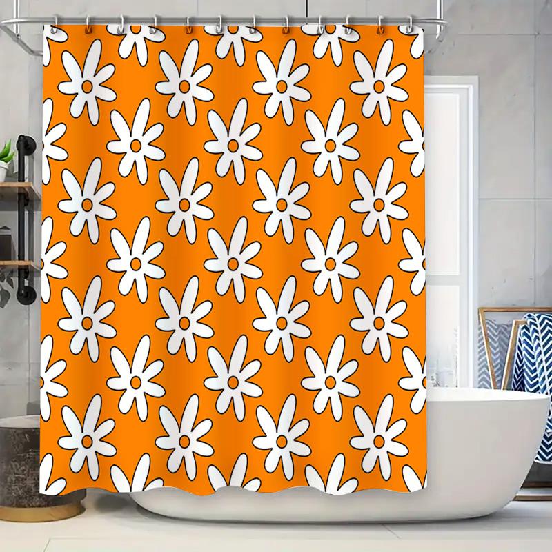 Orange Shower Curtain with White Flower Pattern: Waterproof Bathroom Decor for Kids' Bathrooms or Master Baths Polyester Fabric,