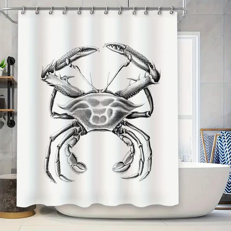 Crab Bath Mat Shower Curtain Waterproof Decorative White Modern Bathroom Accessories with Tassels for Home Decoration