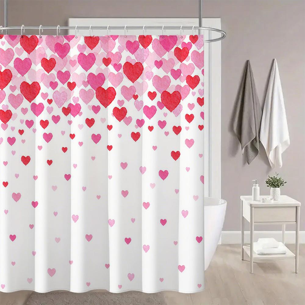 Valentine's Day Heart Shower Curtain Pink Red Gradient Pattern Waterproof Polyester Bath Curtain with Hooks for Bathroom Decor