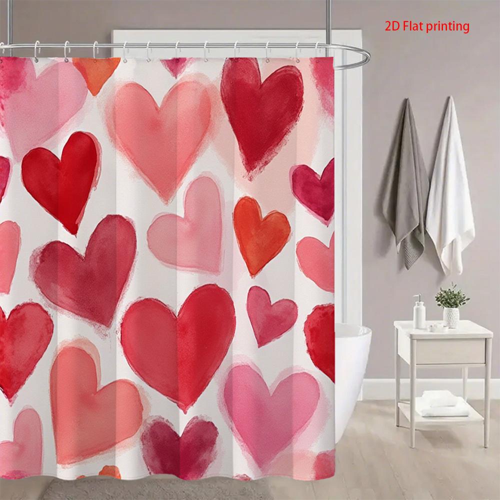 Watercolor Heart Shower Curtain Pink Red on Waterproof Polyester Bath Curtain with Hooks for Valentine's Day Bathroom Decor