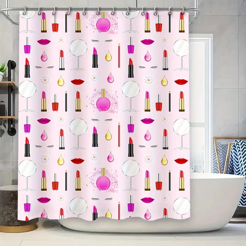 ~O~Pink Beauty Pattern Shower Curtain Waterproof Fabric Bathroom Decor for Women Girls