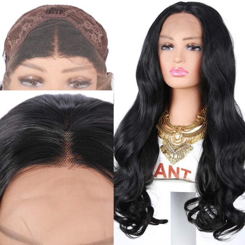 European American Front Lace Wig Women's Long Curly Hair Black Big Wave High Temperature Silk Headgear