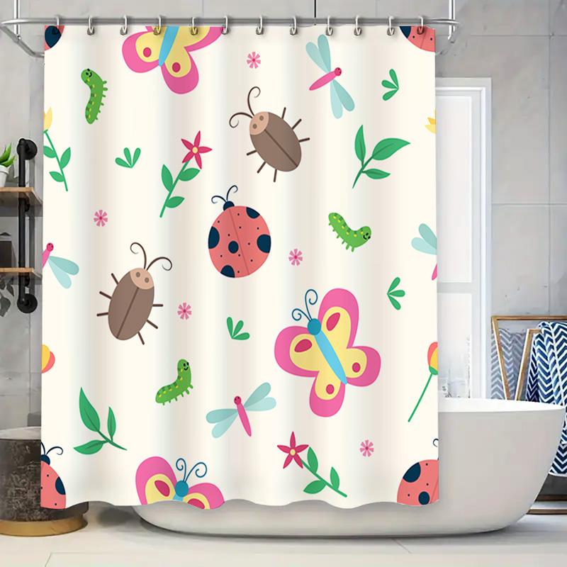 Adorable Butterfly Ladybug Insect Waterproof Shower Curtain for Bathroom Decor