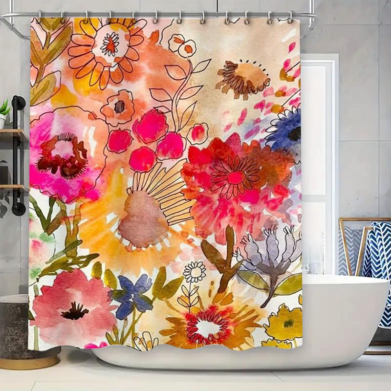 Charming Floral Shower Curtain Modern Watercolor Print for Bathroom Decor