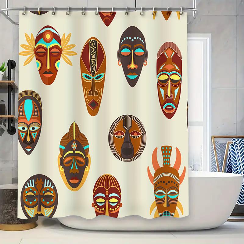 Ethnic Style Shower Curtain African Masks Decorative Plastic Waterproof Fabric Bathroom Liners for Home Decoration in Bath Curta