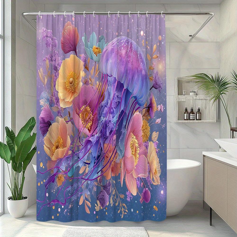 1pc Jellyfish Floral Shower Curtain with Stunning Natural Landscape Design, Bathroom Decor, Polyester Fabric, Includes 12 Hooks,