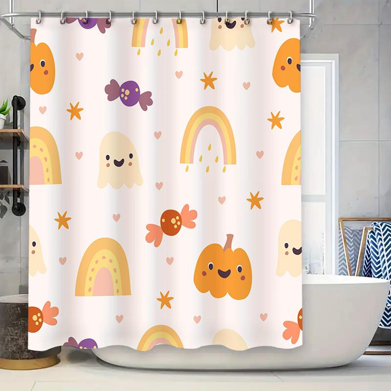 Adorable Ghost Candy Shower Curtain Halloween Decorative Bathroom Hanging Fabric Pink Rainbow Pumpkin Blue Orange Cartoon Style