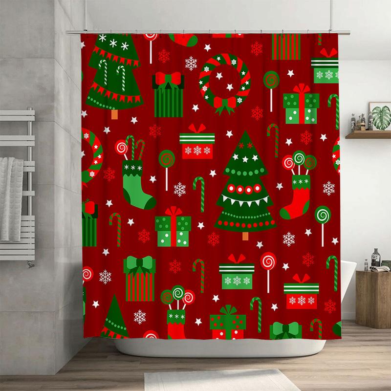 TU Festive Christmas Shower Curtain Reindeer Snowflakes Holiday Bathroom Decor Waterproof Fabric Xmas Home Decor Gift
