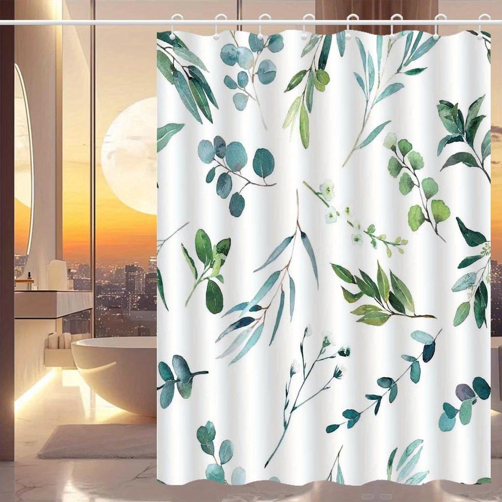 1 piece Nordic green leaf pattern shower curtain, polyester fabric, machine washable, suitable for bathroom decoration
