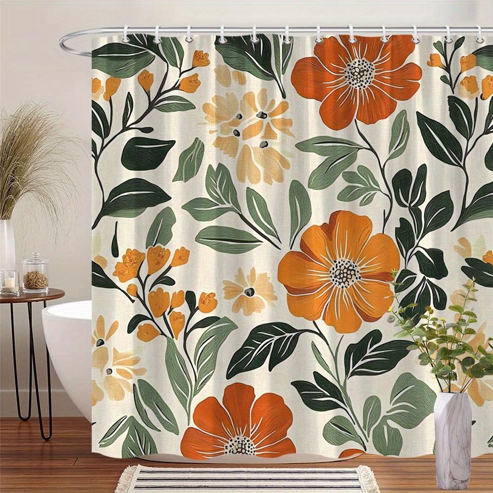 1pc Bright Orange Floral Shower Curtain -Mid-Century Modern Botanical Design with Hooks Polyester Machine Washable, for Bathroom