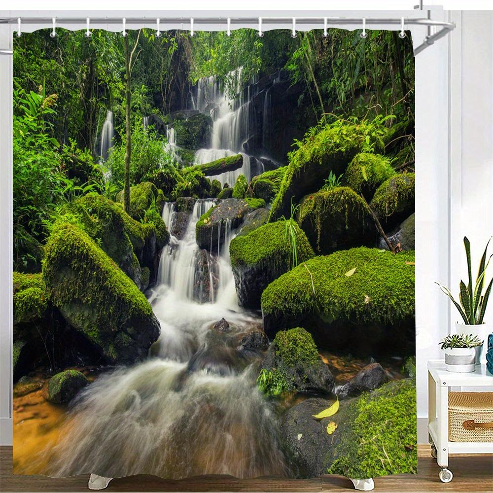 Waterproof Shower Curtain Featuring Lush Tropical Rainforest Waterfall for a Serene and Natural Bathroom Atmosphere