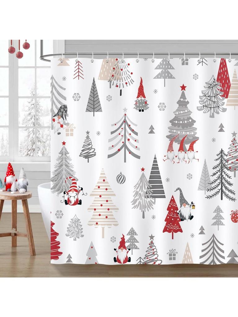 GAEChristmas Shower Curtain, Red Gnomes Xmas Tree Snowflake Winter Holiday Bathroom Decor Polyester Fabric Waterproof Bath Cur