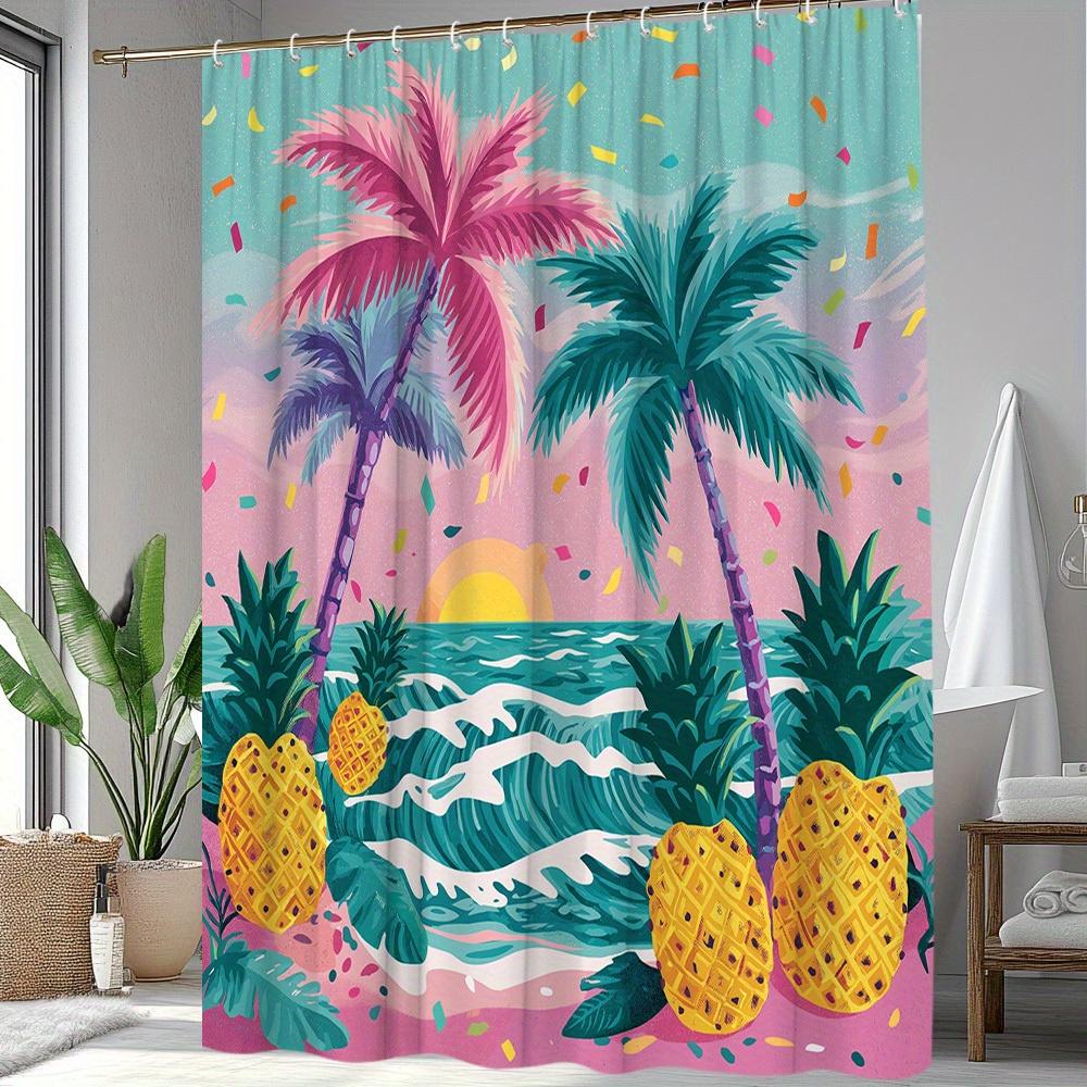 1pc Tropical Landscape Shower Curtain Beach Scenery Banana Tree Pineapple Brilliant Colors Bathroom Decoration Polyester Fabric