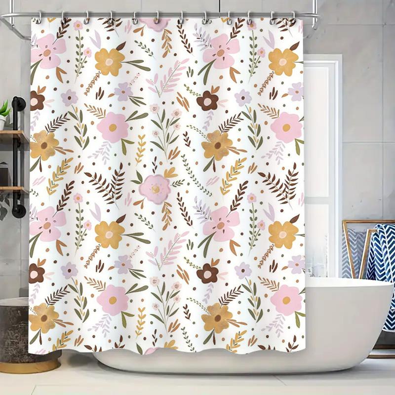 Vintage Floral Print Shower Curtain Soft Fabric Waterproof Bath Decor for Bathroom Decoration White Pink Yellow Gold Brown Black