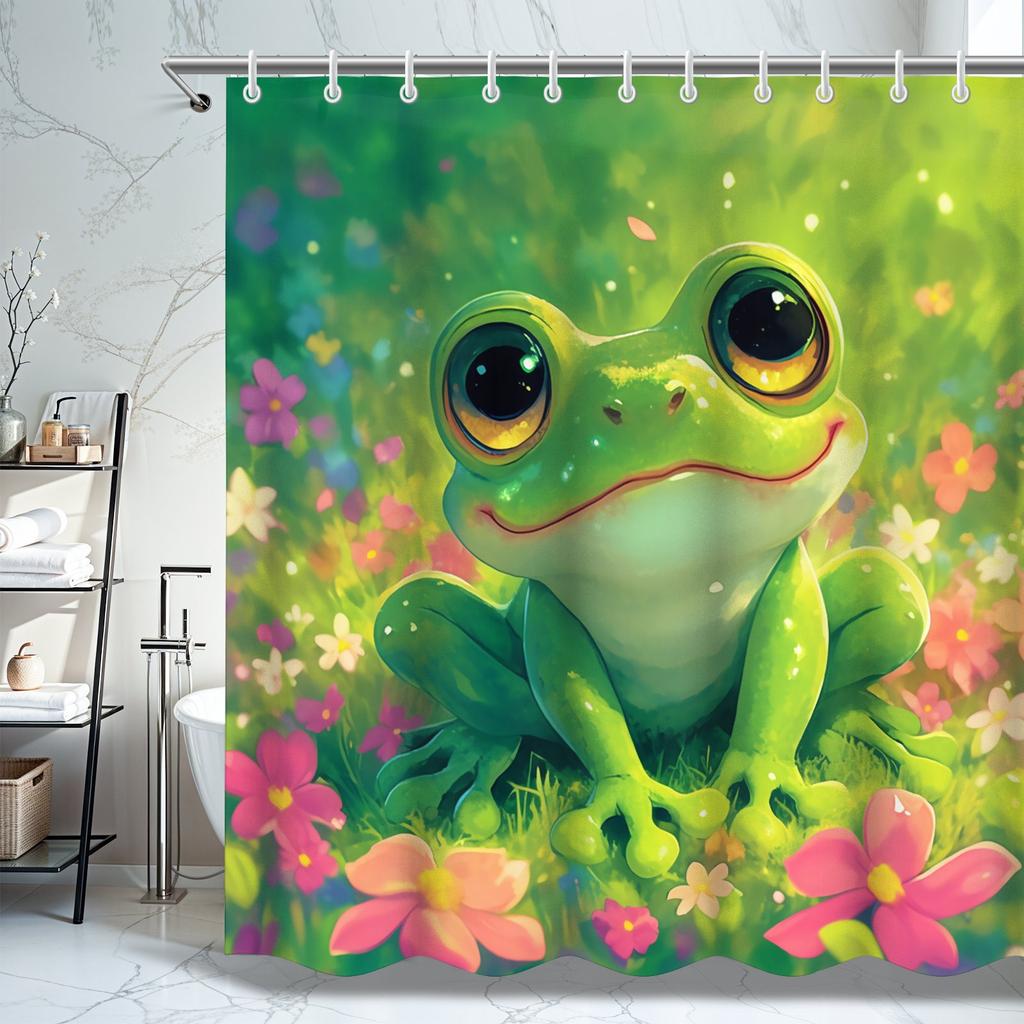 1pc Cute Frog Shower Curtain, Spring Modern Style Bathroom Decoration, Gift for Friends, bathroom accessory sets