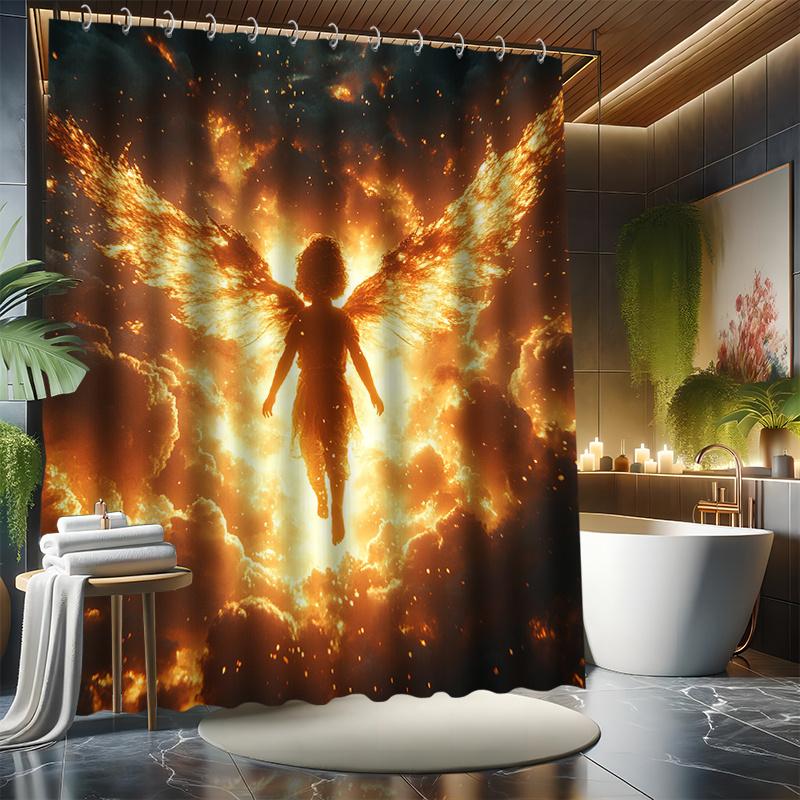 Dusk Angel Shower Curtain Set - Dark Golden, Fantasy Art Series, Includes 12 Hooks, Polyester Fabric