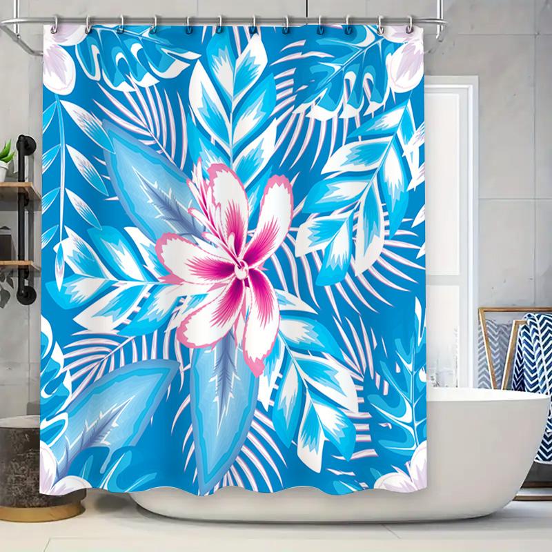 Colorful Bath Curtain featuring Tropical Flowers Blue and White Shower Fabric for Bathroom Decor